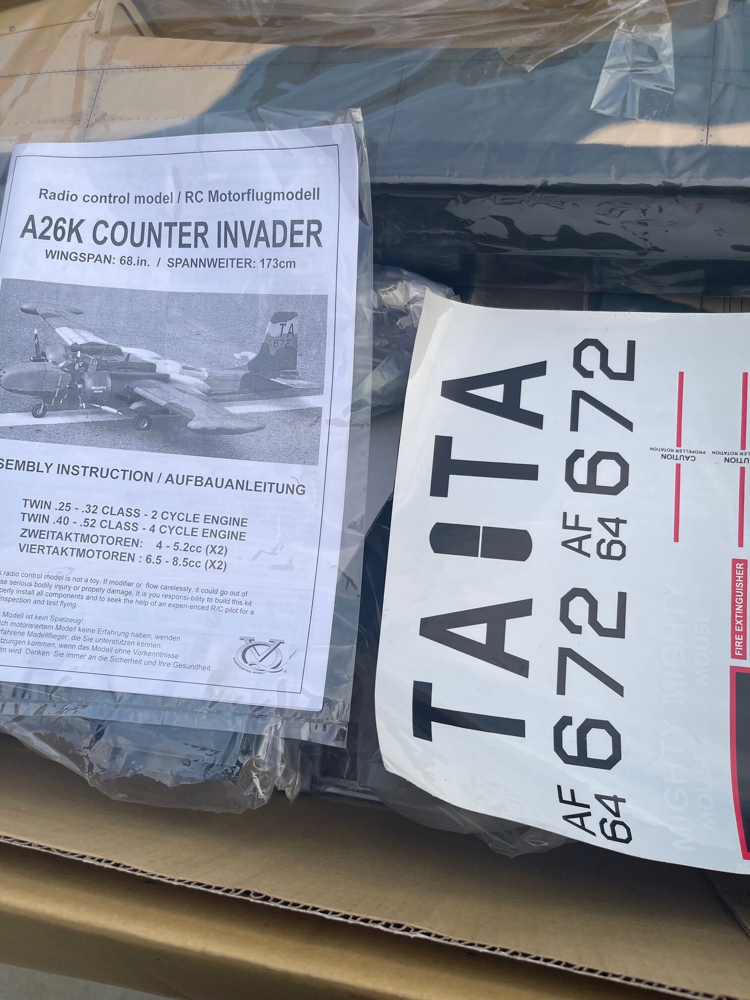 This is a new in the box A26K from VQ Models - It's an ARF that requires assembly and all power/radio equipment sold separate